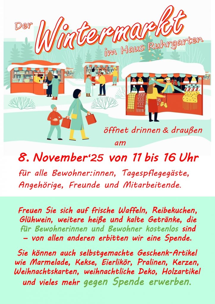 Am 8. November 2025, von 11:00 bis 16:00 Uhr, öffnen wir in unserer Einrichtung im Ruhrgarten drinnen und draußen unsere Türen – und laden alle Bewohner:innen, Tagespflegegäste, Angehörige, Freunde und Mitarbeitenden ganz herzlich ein.
